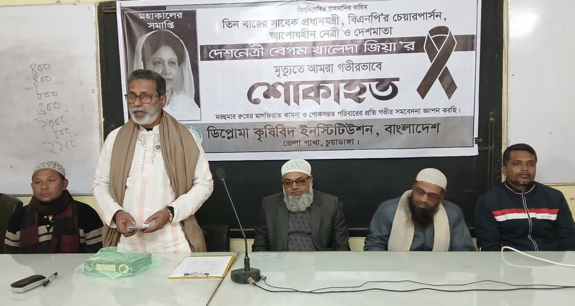 বিএনপি চেয়ারপারসন ও সাবেক প্রধানমন্ত্রী বেগম খালেদা জিয়ার রুহের মাগফিরাত কামনায় আলোচনাসভা ও দোয়া মাহফিল অনুষ্ঠিত হয়েছে। ৩ জানুয়ারি শনিবার দুপুরে বাংলাদেশ ডিপ্লোমা কৃষিবিদ ইনস্টিটিউশন চুয়াডাঙ্গা শাখার আয়োজনে আলমডাঙ্গা উপজেলা কৃষি অফিসের হলরুমে আলোচনাসভা ও দোয়া মাহফিল অনুষ্ঠিত হয়। আলোচনাসভা...