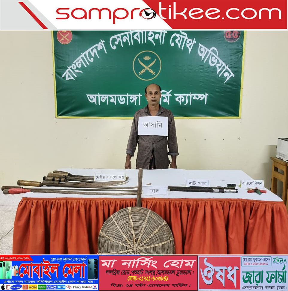 আলমডাঙ্গায় সেনাবাহিনী ও পুলিশ যৌথ অভিযানে অস্ত্র ও গুলিসহ কেশবপুরের ছোয়াদ গ্রেফতার
