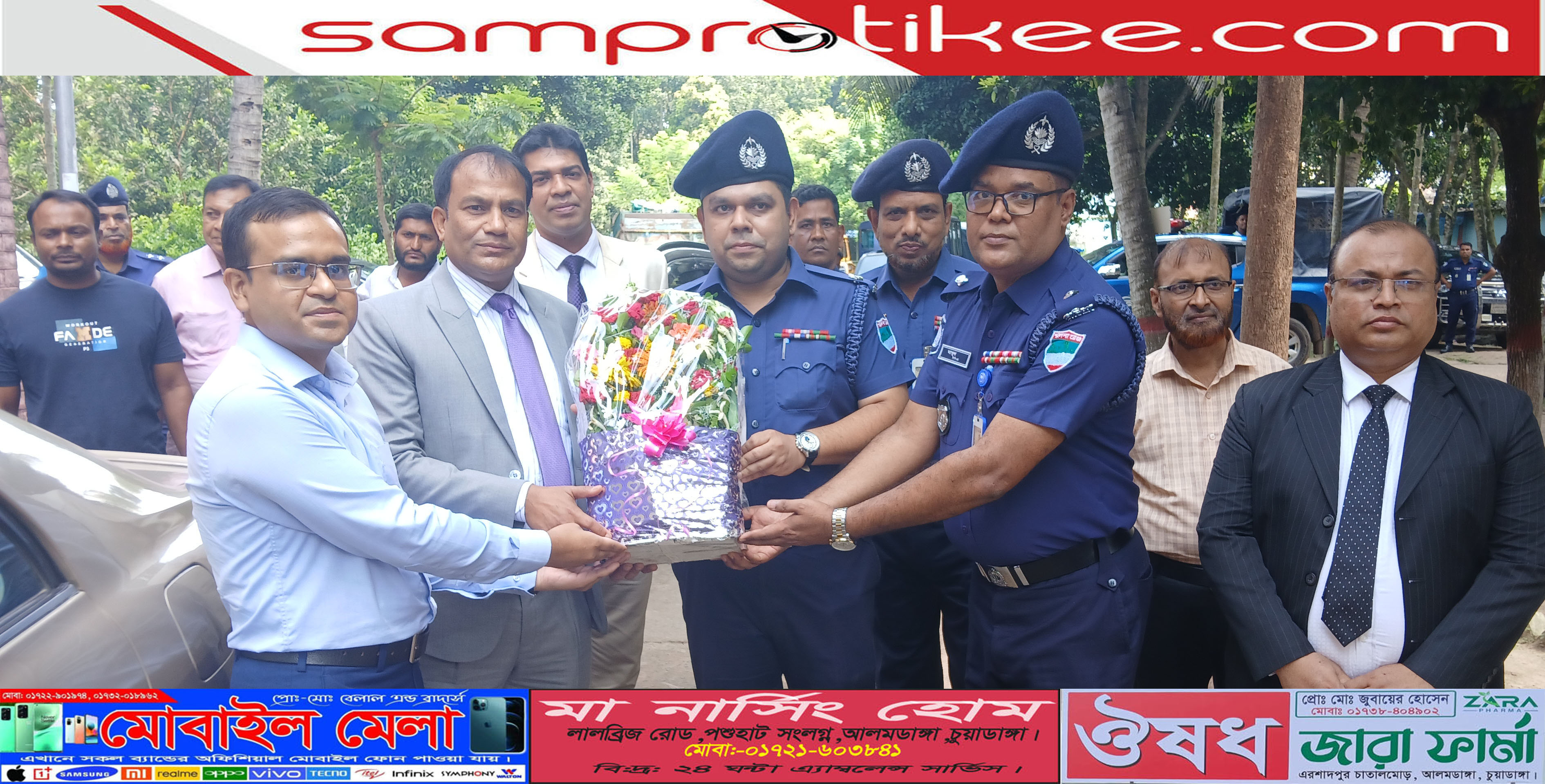 এরপর আলমডাঙ্গা থানা ও উপজেলার পক্ষ থেকে ফুলেল শুভেচ্ছা জানান পুলিশ সুপারের প্রতিনিধি অতিরিক্ত পুলিশ সুপার (প্রশাসন ও অর্থ) মিনাজ উদ্দিন, উপজেলা নির্বাহী অফিসার শেখ মেহেদী ইসলাম, আলমডাঙ্গা থানার অফিসার ইনচার্জ (ওসি) মুহাম্মদ মাসুদুর রহমান(পিপিএম) ও পুলিশ পরিদর্শক (তদন্ত) আজগর আলী। শুভেচ্ছা বিনিময়ের পর জেলা ও থানা পুলিশের পক্ষ থেকে আলমডাঙ্গা থানায় মাননীয় বিচারপতিকে আনুষ্ঠানিক সালামী প্রদান করা হয়।