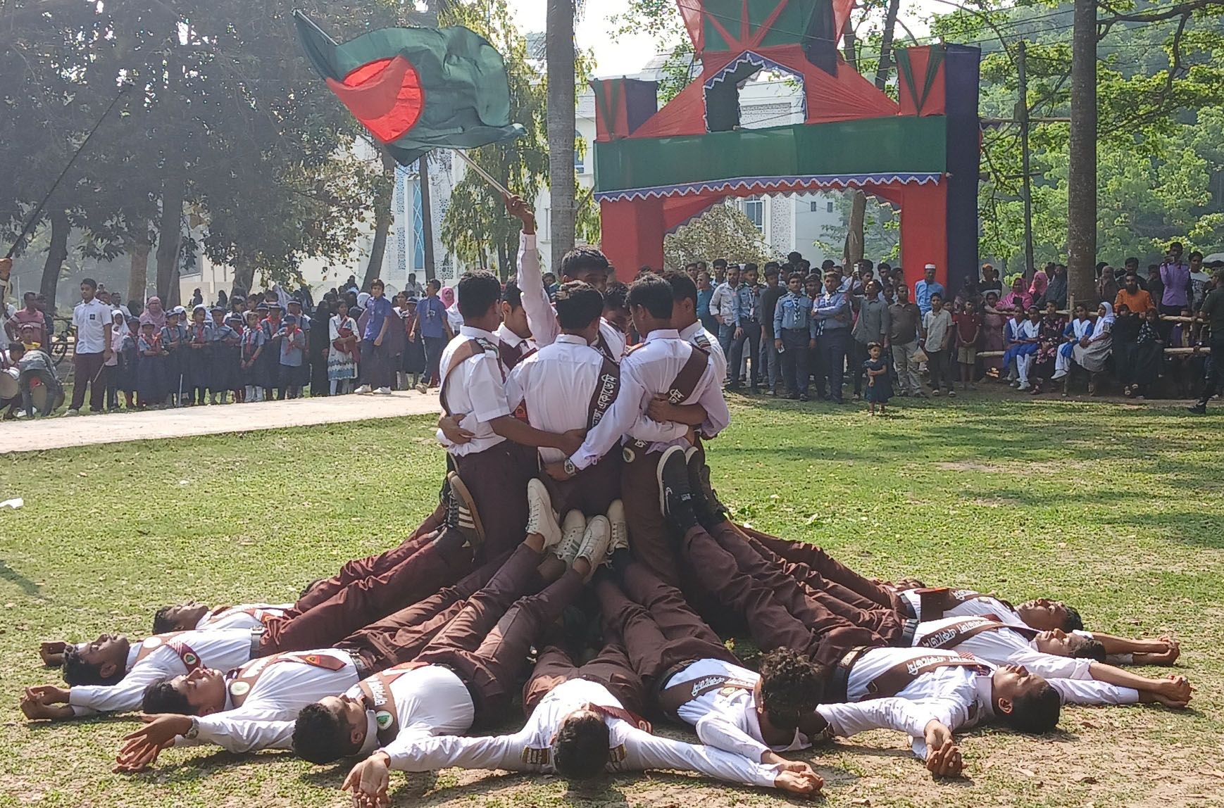সকাল ৮ বাংলাদেশ পুলিশ, আনসার ও ভিডিপি, সিভিল ডিফেন্স, আলমডাঙ্গা ব্যায়ামাগার, বিএনসিসি (আলমডাঙ্গা সরকারি কলেজ), স্কাউট (আলমডাঙ্গা সরকারি উচ্চবিদ্যালয়), পাইলট মাধ্যমিক বালিকা বিদ্যালয়, আলমডাঙ্গা একাডেমি, মডেল সরকারি প্রাথমিক বিদ্যালয়, আদর্শ সরকারি প্রাথমিক বিদ্যালয়, জেএন সরকারি প্রাথমিক বিদ্যালয়ের, এম সবেদ আলী, এরশাদপুর একাডেমি অংশ গ্রহনে কুচকাওয়াজ প্রদর্শিত হয়। কুচকাওয়াজে কমান্ডার হিসেবে দায়িত্ব পালন করেন আলমডাঙ্গা থানার এসআই আলমগীর কবীর। পরে দিনটি উপলক্ষে বিভিন্ন প্রতিযোগীতায় অংশ গ্রহন করে বিজয়ী শিক্ষার্থীদের মাঝে পুরস্কার বিতরণ করা হয়।