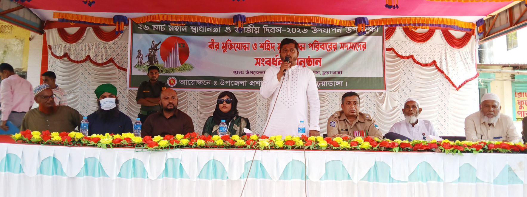 বেলা সাড়ে ১০টায় মহান স্বাধীনতা দিবস ও জাতীয় দিবস ২০২৬ উপলক্ষে উপজেলা মঞ্চে মুক্তিযোদ্ধা ও শহীদ মুক্তিযোদ্ধা পরিবারের সদস্যদের সংবর্ধনা ও আলোচনা সভা অনুষ্ঠিত হয়। উপজেলা নির্বাহী অফিসার পান্না আক্তারের সভাপতিত্বে প্রধান অতিথি ছিলেন , চুয়াডাঙ্গা ১ আসনের সংসদ সদস্য অ্যাড. মাসুদ পারভেজ রাসেল।